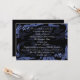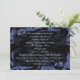 This elegant invitations features the look of blue foil embossing over a black and blue damask background. A beautiful design for Vintage, Goth and Vampire themed weddings and events. All elements are printed on our high quality card stock, they do not include any real gold, jewels, embossing, or other textile elements. All designs are copyright Gothic Bridal and Tabitha Jones all rights reserved.