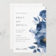 Dusky Blue Gold Floral All in One Wedding Invitation