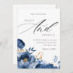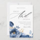 Dusky Blue Gold Floral Wedding Invitation
