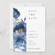 Dusky Blue Gold Floral Wedding Save the Date
