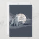 A stylish and elegant design on a very dark dusky slate blue background featuring the beautiful watercolor silhouette of a white wolf standing in front of a dark full moon. A red fox appears in front of him and is framed by soft blue and brown berry foliage and leaves. He is bordered on each edge by pine cones and fir tree leaves. If you are getting married in winter, have a winter wonderland, rustic fall | autumn or forest woodland theme wedding then this illustration is perfect for your needs.