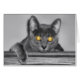 A photograph looking straight in the face of a grey cat with golden glowing eyes. Edited with selective colouring to emphasize the mesmerising eyes.