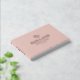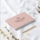 Elegant and romantic wedding guestbook in dust pink and rose gold with interlocked heart above your shared last name in classic rose gold foil lettering, your names beneath and then wedding date. Dust pink and rose gold wedding guestbook with romantic hearts intertwined and your names in a tasteful design. Simply romantic guestbook for your wedding with a neutral and romantic design with two hearts, your last name, names, and wedding date in rose gold foil against a soft muted light pink background.