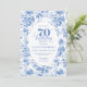 Celebrate a milestone in timeless style with this 70th Birthday Invitation featuring elegant French Toile de Jouy navy roses. Designed in navy blue, royal blue, dusty blue, and deep blue floral tones, this personalized invitation adds classic charm to any celebration. Perfect for a chic, vintage-inspired party, it can be customized with name and details for a truly memorable event.