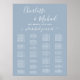 Dusty blue elegant signature wedding seating chart featuring signature style names, this chic, stylish seating chart can be personalised with your information in modern white lettering. Designed by Thisisnotme©