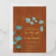 With a beautiful simple watercolor blue floral arch and burnt orange background these wedding invitations are stunning for the modern wedding. Foil details and calligraphy font make these invitations timeless and elegant. Find matching items in my shop.