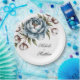 A detailed botanical illustration of light blue peonies and white cotton bolls against a pure white background. The peonies are rendered in soft, layered petals with delicate shading and subtle variations in the blue-gray color. Three fully bloomed peonies are positioned in the center-left of the composition, each with detailed stamens and pistils. Three white cotton bolls with brown stems are placed on the right side of the arrangement, showing their characteristic fluffy, ball-like structure. The cotton bolls have small green sepals attached. The illustration has a watercolor-like quality with subtle color gradients and delicate linework. The flowers are arranged in a loose, natural grouping with stems and leaves that are partially visible. The overall composition is balanced and symmetrical, with the flowers filling most of the frame against the stark white background.