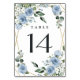 Dusty Blue and Gold Elegant Floral Rustic Wedding Table Number