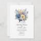 Dusty blue and gold floral wedding invitation with elegant typography customisable to your event specifics.