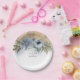 Dusty blue and gold glitter elegant watercolor flowers paper plates