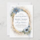 Dusty Blue and Gold Glitter Floral Modern Wedding Invitation