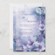 This Dusty Blue and Lavender Floral Watercolor Wedding Invitation features a soft, ethereal design blending gentle watercolor textures with hand-painted purple florals and delicate botanical accents. The elegant double-line white frame adds structure to the floating floral arrangement, creating a dreamy, romantic backdrop that perfectly suits a variety of event themes.