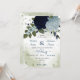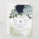 dusty blue and navy flowers greenery wedding invitation