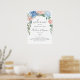 Romantic floral wedding welcome sign designed with a garland of dusty blue and pink flowers. Make the sign your own with your names and date, as well as a custom message at the bottom of the sign.