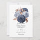 Elegant rose gold, navy and dusty blue flower wedding invitation with aspects of blush pink customisable to your event specifics. Ideal for any given theme or garden wedding.