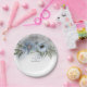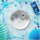 Dusty blue and silver glitter elegant watercolor flowers paper plates