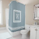 Dusty Blue and White Classic Square Monogram Shower Curtain