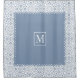 Dusty blue and white damask pattern and monogram shower curtain