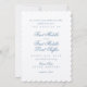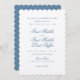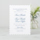 Featuring decorative script font, scallop trim, and premium textured paper, this invitation set reflects the charm and elegance of a classic coastal wedding. The subtle combination of dusty blue and white creates a romantic and serene vibe, perfect for any beach-themed celebration.