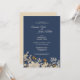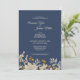 This Dusty Blue Autumn Boho wedding reception invitation combines an antique vibe with a retro bohemian wildflower look. The elegant, neutral beige wildflowers on top of the dusty blue, navy background, with its classy calligraphy typography, allows for a formal but wild and floral, vintage style marriage celebration theme.