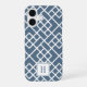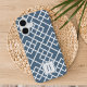 Dusty Blue Bamboo Lattice Pattern Monogram iPhone 16 Case