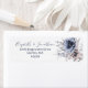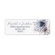 An elegant return address label for your wedding mailouts. The simple design features a watercolor floral arrangement in a colour palette of dusty blue, heather lilac and beige. A modern typography in slate blue for the couples names and address