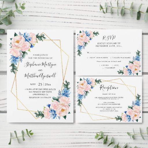 Dusty Blue Blush Pink Floral Geometric WeddingDesigned by Gail K