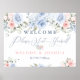 PixDezines Modern Calligraphy Font with DIY color, a Seat Yourself Sign. Dusty blue and blush pink Watercolor Roses seating chart with DIY background color.