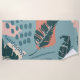 Get the party started with these cute beach towels that are easy to personalise for your bachelorette party, hen night, or girls' weekend! Modern party style design features tropical leaves and patterns with bold colourful lettering on a dusty blue background. Personalise with three lines of custom text; shown with the bride's name, event type, location and date. All text can be edited per your liking.
