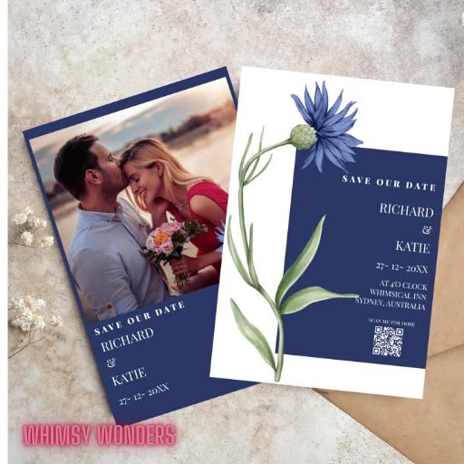 Dusty blue Bold Floral stylish Qr code wedding In Invitation