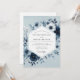 Delicate floral elements in deep blues and soft whites intertwine with lush green foliage. This design evokes a serene and romantic mood, perfect for a sophisticated celebration. The artwork features anemone-like blooms and textured leaves.
