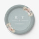 Dusty Blue Botanical Boho Elegant Wedding Monogram Paper Plate