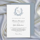 Dusty Blue Botanical Crest Monogram Wedding Invitation
