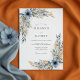 Evoking a tranquil, ethereal mood, this design features a delicate arrangement of dusty blue blossoms and muted golden foliage. The artistic composition creates a sense of gentle elegance and natural beauty, perfect for a refined occasion.