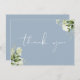Dusty Blue Botanical Greenery Elegant Script Thank You Card