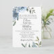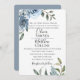 Watercolor flowers in chic dusty blue with botanical branches, wedding invitation. Customise text, font style, colour and size.