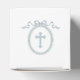 Dusty Blue Bow Greek Frame Baptism Cube Favour Box