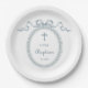 Dusty Blue Bow Greek Frame Baptism Paper Plate