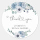 The sticker is made on wonderful paper and had no problem sticking to the bag that I purchased to put it on. I wanted to find a design that would be cute for the bride and groom and this one fit the bill as it has cute "bees" buzzing around and the wedding was taking place in a town called "Bee Cave". The packaging was great and protected the stickers. The website is easy to navigate and there are so many color choices. I had no problem finding a color that the bride was using on everything else selected. The design was adorable and there were many to choose from. You can make the figure as larger or smaller and you can place the photo and writting whereever you want to in the sticker. The printing is fabulous..better than expected.