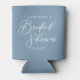 Dusty Blue Bridal Shower Personalised White Script Can Cooler