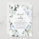 Dusty Blue Floral Roses and Eucalyptus Botanical Greenery Watercolor Spring or Summer Wedding Brunch and Bubbly Champagne Bridal Shower Invitations - includes beautiful and elegant script typography with modern tropical botanical flowers and greenery for the special Bride to Be celebration.