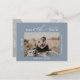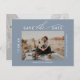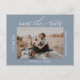 Dusty blue brush script 2 photos save the date postcard