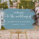 Modern Elegant Script Dusty Blue Brush Strokes Wedding Welcome Sign