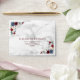 Modern, elegant and trendy, this wedding RSVP envelope design features an all over faux Carrera marble texture, with the return address in a burgundy red, and is decorated on the front with dusty blue, burgundy and blush pink floral elements. Part of a matching wedding set. Copyright Elegant Invites. All rights reserved.