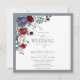 Dusty Blue Burgundy Red Floral Watercolor Photo Invitation