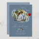 Classic dusty blue with a burgundy accent - the text reads - 'she said yes' in handwritten calligraphy. Save the Date - two shades of dusty blue, a little lighter on the back , accents our brush stroke photo frame - accented with gold splatters, surrounded by delicate silver dollar eucalyptus foliage and deep burgundy red roses. Let your guests know you're getting married - and to keep your special date open