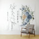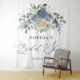 Elegant dusty blue and champagne floral tapestry — perfect bridal shower wall décor or backdrop accent.
