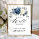 Dusty blue floral bridal shower / wedding well wishes for the new Mr. And Mrs. featuring elegant bouquet of navy blue, royal blue , white , gold, champagne ivory, blush color rose , ranunculus flower buds and sage green eucalyptus leaves and elegant watercolor bouquet. Please contact me for any help in customization or if you need any other product with this design.