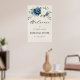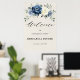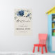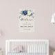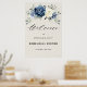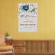 Dusty blue floral rehearsal dinner welcome poster featuring elegant bouquet of navy blue, royal blue , white , gold, champagne ivory, blush colour rose , ranunculus flower buds and sage green eucalyptus leaves and elegant watercolor bouquet. Please contact me for any help in customisation or if you need any other product with this design.