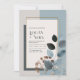 Dusty Blue Charcoal Leaf Gold Frame Wedding Invitation